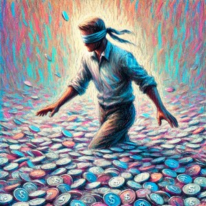 When this has been done, blindfold one man. Tell him he can travel wherever he wishes in the state of Texas. Tell him that somewhere along the way, he must stop and reach down into the two feet of silver dollars and randomly pick only one coin, and it has to randomly turn out to be the specific silver dollar coin we secretively marked with the cross.